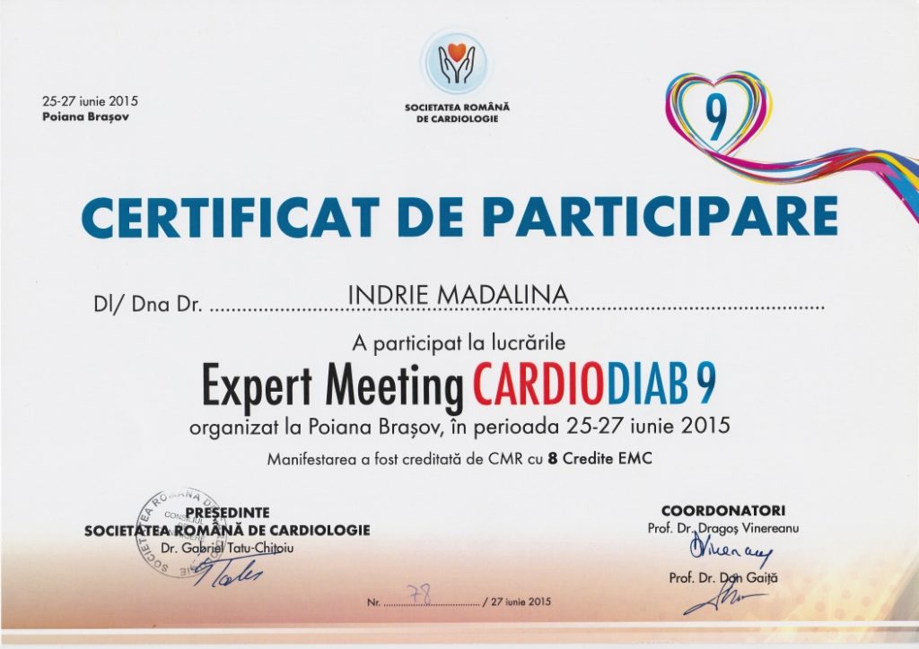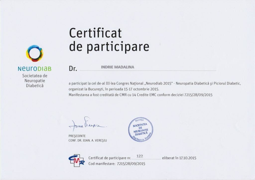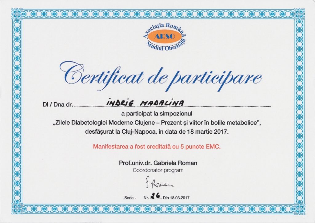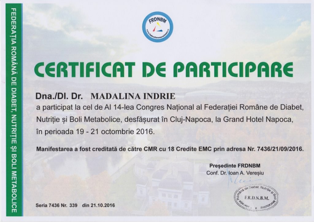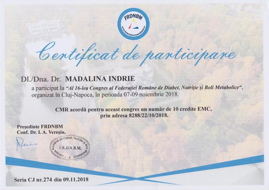 - UMF Iuliu Hatieganu, Facultatea de Medicina. Rezidentiat in specialitatea Diabet Zaharat, Nutritie si Boli Metabolice